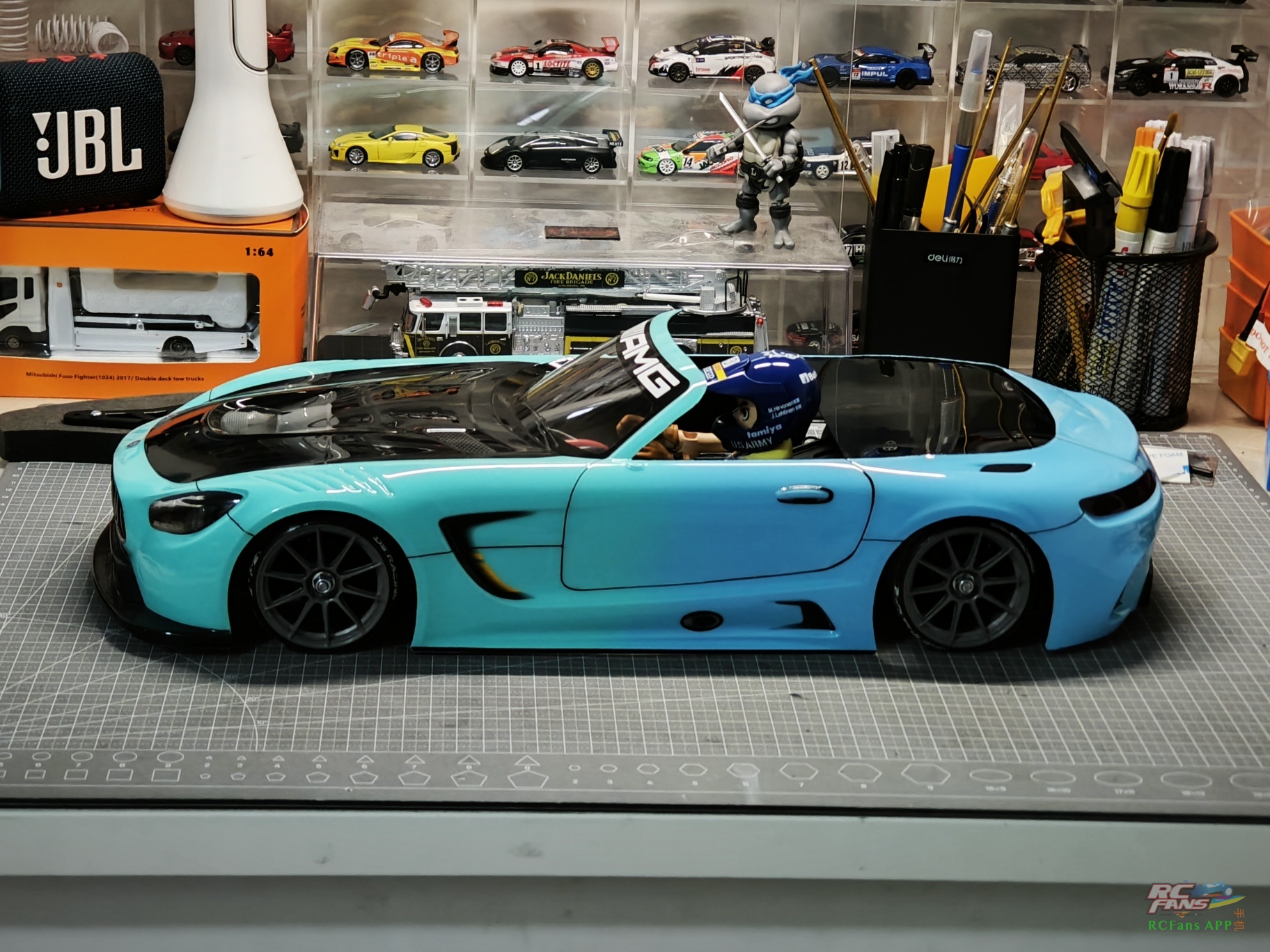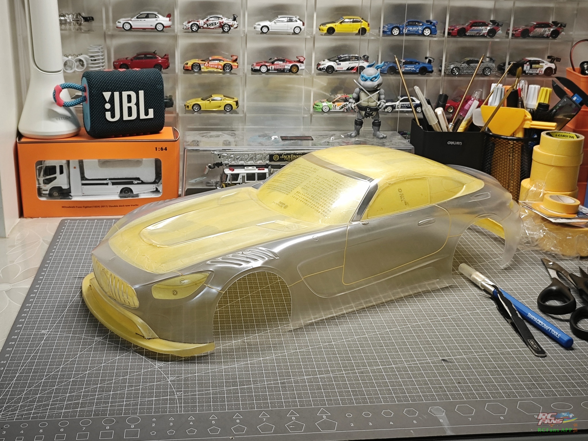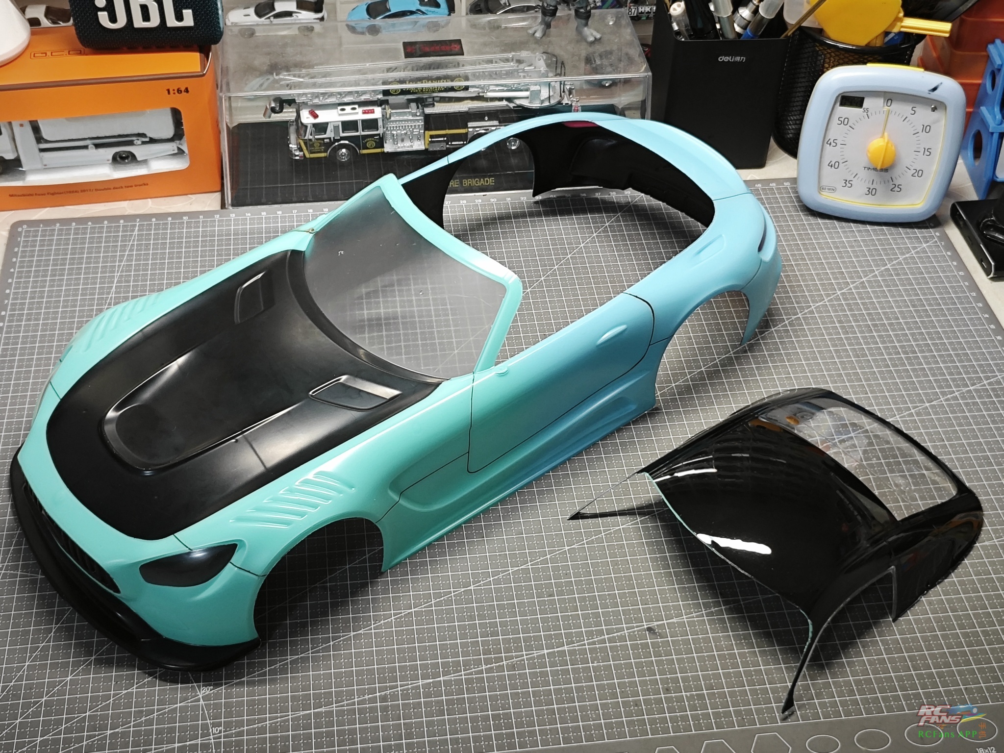 国际惯例,先上成品![]() ![]() ![]() 【TT01赛道游街,车壳:Mercedes-Benz AMG GT C roadster-哔哩哔哩】 说来惭愧,做这台车的起因是9月份带儿子去广州改装车展,快6岁的儿子第一次见到没有车顶的跑车,问我们给家什么时候能买一台敞篷车,家境贫寒的我只能给小孩做一台模型车 (下图是儿子用儿童相机拍下的AMG GT C roadster照片),由于工作较忙,时隔两个多月车壳才完成,错过了儿子的6岁生日,这个是比较遗憾的。![]() 做这车壳首选肯定是用田宫的AMG GT3车型的车壳,开始时想偷懒,直接做黑顶代替敞篷,无奈儿子直接不认账,无论如何也不要车顶 ![]() ![]() ![]() ![]() 经过一轮思想斗争,车顶切掉吧。车顶既然切掉了,人偶肯定得安排上,这个倒是偷工减料了一下,找代工做了一个田宫的人偶。人偶用ABS板+螺丝固定在TT01的二楼板上,赛道上试跑了一下人偶固定还算是比较牢固的。 ![]() ![]() ![]() ![]() 车壳已经拍照、拍视频留念,接下来就要开孔让儿子下地了,作为儿子的第一台1/10平跑战车。从12年前购入第一台车开始我一直喜欢改装自己的车辆,这次带儿子去看改装车展算是他人生中第一次接触改装文化。我们这一代人或多或少是有燃油车情结的,虽然新能源汽车已经大量普及,但我个人而言是持否定态度的,也许以后我们的下一代会认为现在所谓的新能源是再理所当然不过的东西,而我能做的只有带他去见一下他父亲这个时代的产物,听一下直排的声浪,感受燃油车的魅力。也许这就是时代的变迁,也是内燃机最后的倔强。 ![]() |