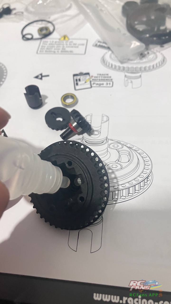 按照差速轴之前在轴全部涂上硅油,o圈也预涂。外接杯连接处我会用石墨油,因为要套上轴承。 差速安装基本上按照说明书就可以。说明书差速外轴承下面有一侧没说明要安装m6垫片,但是包装里给了两片,记得装上就行(见最后一张图) 原厂5k cst的油,很多人的设定都是这样,先用着吧。我个人其他车更喜欢7k油用于地毯。另外我个人的油全是装满,这样可以减少变量,纯粹通过油调整阻尼,也不需要称重。 差速整体安装很舒适,内轴承让整体更加顺滑。中轴做了镂空处理,极限减重(图4)。 盖的密封防漏方式为o圈,个人更喜欢这种,相比其他密封垫设计,防止了螺丝过紧,拆装撕破的风险。 差速盖没有定位销,安装的时候要注意四个螺丝的位置对准。螺丝安装时涂上硅油,减少安装阻力。拧的时候一定要慢,防止过热软化尼龙。也不要拧过紧,拧到最紧的时后大概松45度,防止差速齿感过强,差速不顺。 ![]() ![]() ![]() ![]() ![]() ![]() ![]() |